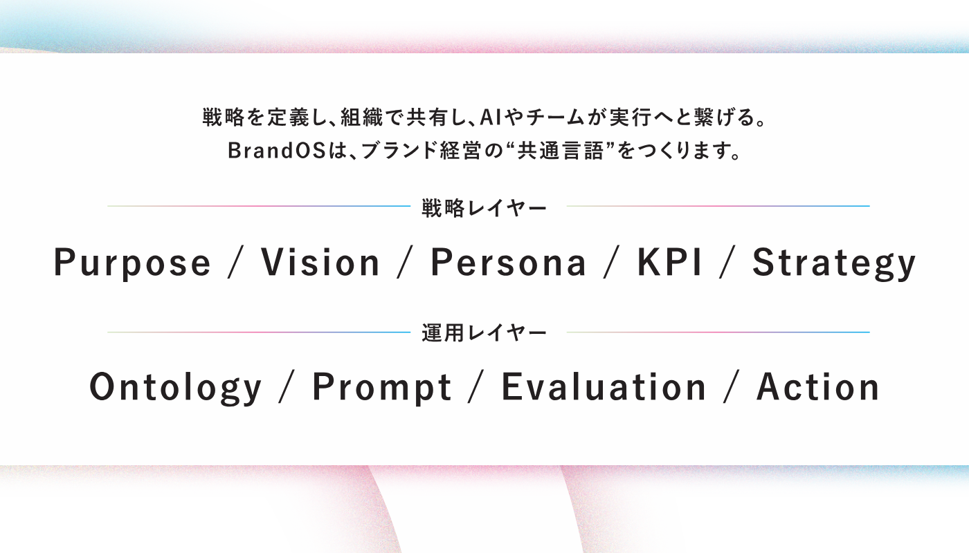 その中核として生まれたのがBrandOS。日本のブランド運営に寄り添う設計思想で、戦略策定からAI活用までを一貫して支援します。