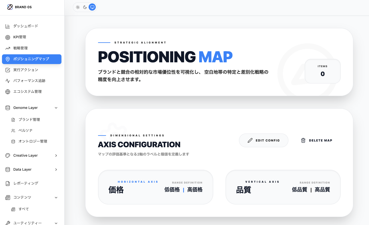 🧩 Core ブランド管理/ブランド評価/アクションアイテム/ポジショニングマップ